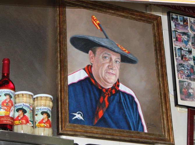 Вон там на полке вино — узнаешь, кто на этикетке? Manolo El Del Bombo — это марка. Но вообще-то, конечно, я мог бы быть гораздо более богатым человеком.