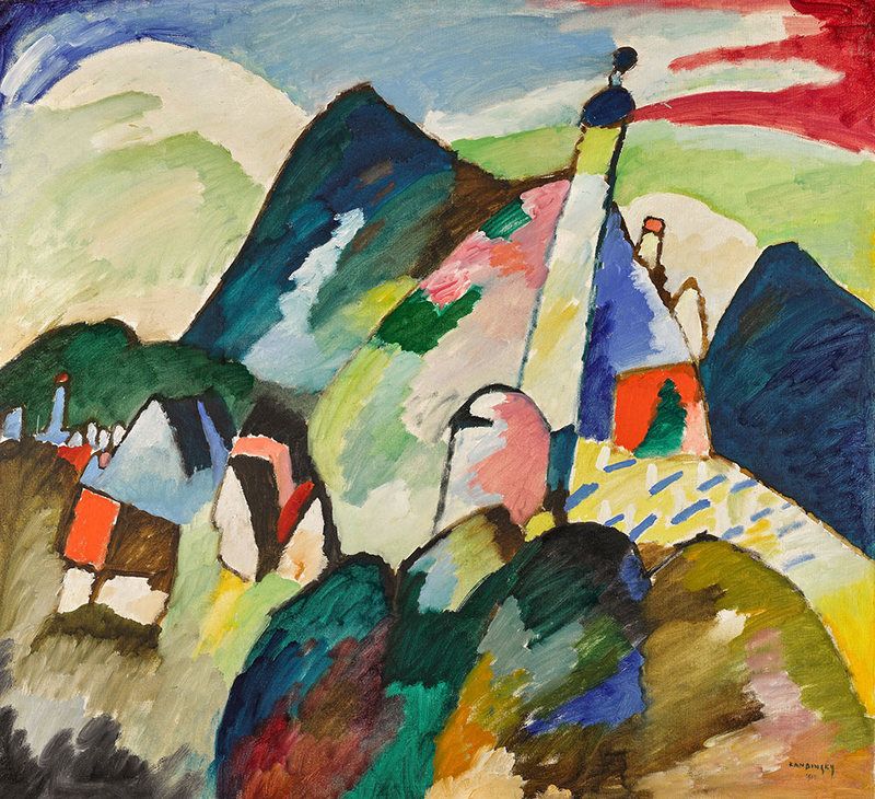 Кандинский Василий Васильевич (1866–1944). Вид на Мурнау с церковью II. 1910. Холст, масло. 96 × 105,5. Sotheby’s. 01.03.2023. Цена: £37 196 800. Источник: sothebys.com