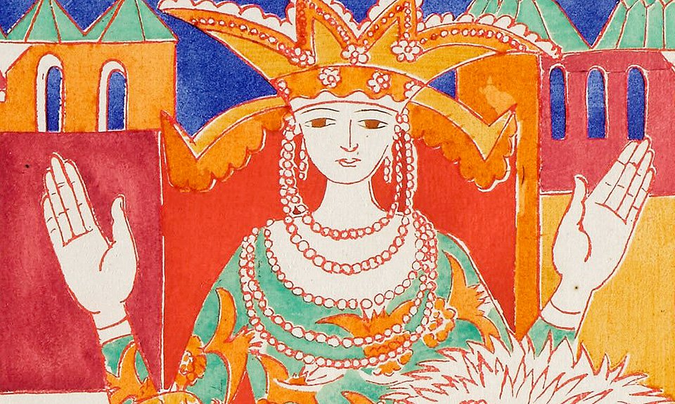Наталья Гончарова. «Ты детей благослови жить в совете и любви». Разворот из издания «Сказка о царе Салтане» А.С. Пушкина. 1921. Фрагмент. Фото: Государственная Третьяковская галерея