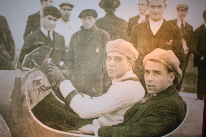 Легендарный автомобиль великого форварда. Когда-то этот Fiat 1500 Cabrio принадлежал Ди Стефано. За рулем, собственно, это он и есть. А на пассажирском месте — друг Кубала. Машина, кстати, абсолютно исправная. Последний техосмотр пройден в 2007 году.