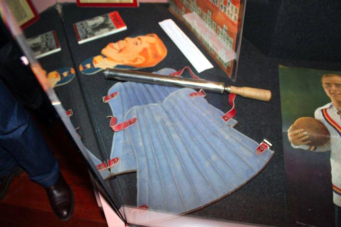 Вот, например, щитки Заморы и насос, которым, по преданию, он лично накачивал мячи.