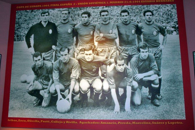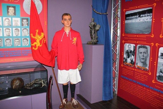 А вот и сам Рикардо. Гипсовый, нескладный, аляповато раскрашенный, немного даже кособокий, но все равно всеми горячо любимый... В последний раз он сыграл за сборную в декабре 1938-го. И после этого для сборной как-то сразу настал год 1964-й: во всяком случае, именно такое впечатление сложилось у меня во время ознакомления с экспозицией — эпоху Заморы от эпохи Ирибара в ней отделяли пара шагов и пара же весьма скромных стендов. Нет, ну а в самом деле, чего рассусоливать, если похвастаться особо нечем: да, был, конечно, в их истории еще и 50-й год с четвертым местом на чемпионате мира, но по нынешним-то временам это разве свершение?