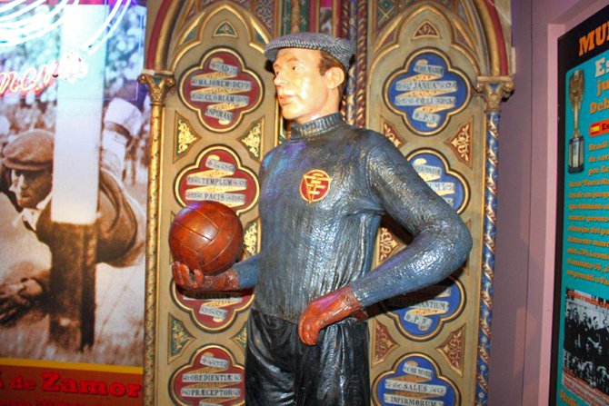 Ворота той команды защищал 19-летний Рикардо Замора Мартинес (на фото на переднем плане). Каким он парнем был, я тут подробно расписывать не стану, кому надо, пусть сам поинтересуется. Скажу лишь, что Рикардо оказался одним из очень немногих испанцев, включенных в сотню лучших игроков XX века от World Soccer. Или вернее даже будет сказать, что одним из всего двух испанцев — помимо него в славном списке отметился Хенто. Потому, что остальные трое — Ди Стефано, Кубала и Пушкаш — ну какие они, если по правде-то, испанцы? В общем, как ни посмотри, а до нарождения нынешнего во всех отношениях чемпионского поколения, именно Замора был главной иконой испанского футбола, и в музее сборной это очень даже ощущается. Ни одному другому футболисту здесь не уделено такого благоговейного внимания и стольких экспозиционных площадей.