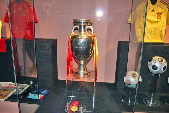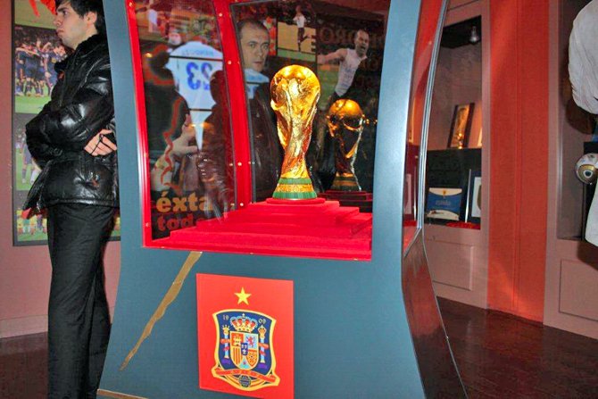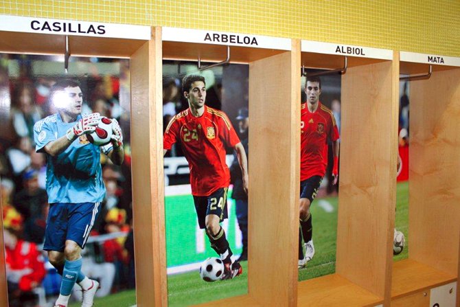 А это жилые корпуса, снаружи и внутри. Лобби бар. Лаунж. Столовая для игроков. Ресторан, с недавних пор носящий имя дель Боске, и конференц-зал на 308 мест, названный в честь его предшественника Арагонеса. А еще у них прямо там, на базе, имеется музей сборной. Открылся он совсем недавно, под Рождество. Так что мы, вполне возможно, были первой группой из России, в нем побывавшей.