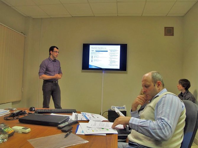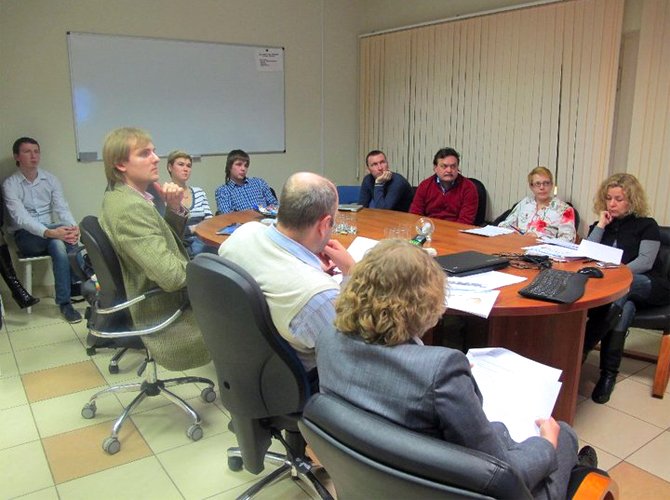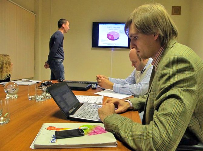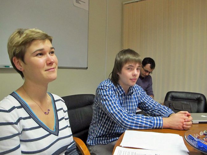 8 февраля подошел срок отчитаться о работе. Слушатели и кураторы специализации "Менеджмент в сфере интернет-технологий" собрались в офисе "ВебМани". Со стороны WebMoney на встрече присутствовали директор по маркетингу Анастасия Масленникова, директор по внешним связям компании Webmoney Transfer, Петр Дарахвелидзе и PR-директор компании Webmoney Transfer Ксения Великина. Собрание в переговорной не похоже на строгий экзамен. Атмосфера доброжелательная, хотя время от времени в диалоге проскальзывают острые вопросы.