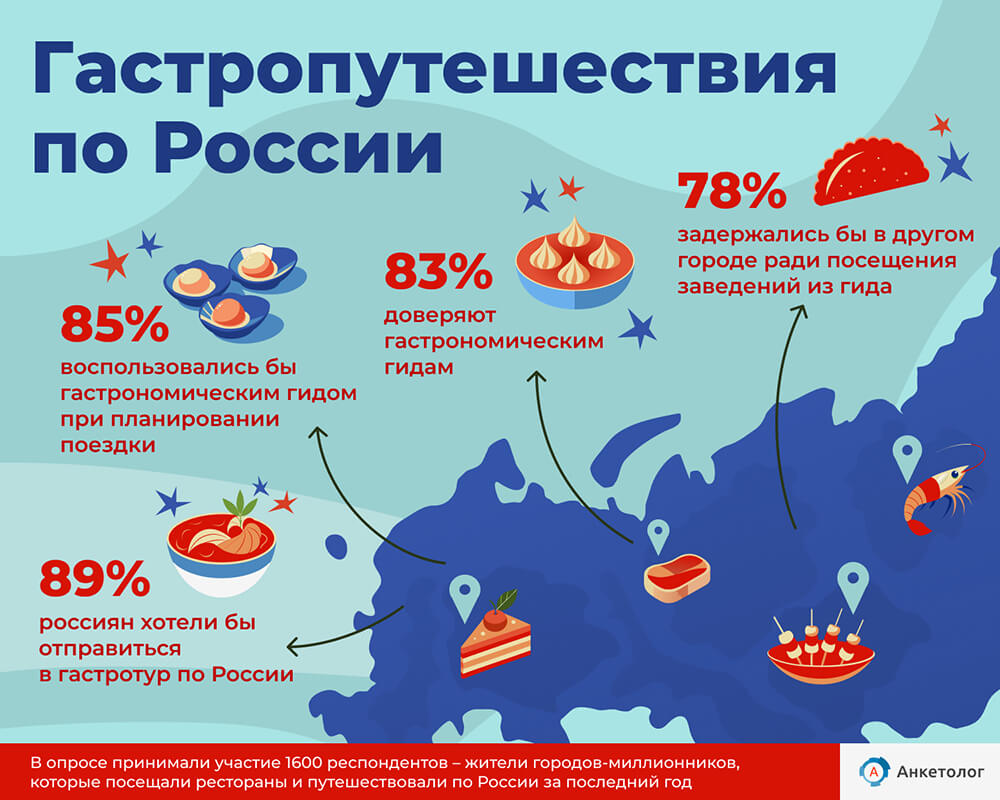 В опросе приняли участие 1600 респондентов – жители городов-миллионников, которые посещали рестораны и путешествовали по России за последний год,