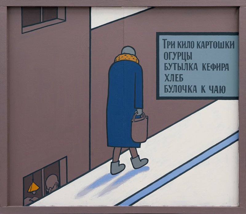 Костяк экспозиции составляют работы представителей некогда неофициального советского искусства, а сегодня — российских и мировых классиков: Ильи Кабакова, Эрика Булатова, Ивана Чуйкова, Виктора Пивоварова, Риммы и Валерия Герловиных, Елены Елагиной, Юрия Злотникова, Бориса Турецкого, Михаила Рогинского, Вячеслава Колейчука, Франциско Инфантэ.