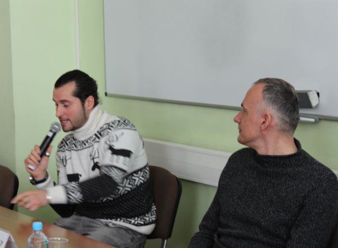Ираклий Пирцхалава: «Я сам сейчас на этом факультете учусь. Очень нравится. Особенно мастер – классы с иностранными артистами и продюсерами – Александром Бардом, In-Grid. Я уверен, что то, что я здесь получу, мне очень пригодится при подготовке нового альбома, а также в продвижении проекта «Вахтанг»: этот парень - один из самых крутых битбоксеров. У него, кстати, 31 марта концерт в «16 тоннах».