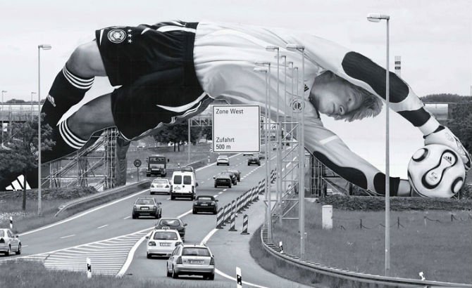 Рекламный ролик Nike «Создавай будущее» (Write The Future, 2010 год) с участием Криштиану Рональду, Уэйна Руни и других звезд. По свидетельству Sostav.ru, «этот клип ассоциируется с Чемпионатом мира 2010 больше, чем реклама Adidas, Coca-Cola, Sony и Visa». «В ходе исследования, проведенного компанией Nielsen,- отмечает портал, - выяснилось, что Nike, не являющийся официальным спонсором мирового первенства, имеет в два раза больше упоминаний о связи с чемпионатом, чем официальный спонсор, компания Adidas. Adidas занимает второе место, разделяя пьедестал с такими официальными спонсорами турнира, как Coca-Cola, Sony и Visa на третьем, четвертом и пятом местах соответственно. Carlsberg, недавно запустивший динамичную рекламную кампанию с участием множества звезд, занимает 6-е место, не являясь при этом официальным спонсором чемпионата. В то время как пивоваренная компания Budweiser, по данным проведенного исследования, даже не попала в десятку лучших. Это исследование доказывает, что грамотный маркетинг компании создает устойчивую связь бренда с Чемпионатом мира в глазах потребителей без затрат крупных денежных сумм на его спонсорство».
