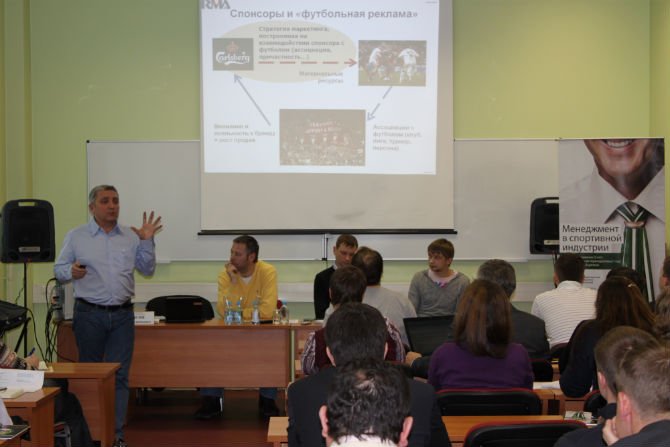На факультете «Менеджмент в игровых видах спорта» RMA прошла конференция «Футбол и реклама», в которой помимо слушателей специализации приняли участие Андрей Симонов (директор по организации соревнований футбольного клуба «Динамо» (Москва), Олег Майоров (руководитель PR-лаборатории "PRавила спорта") и Алексей Гурьянов (директор по развитию агентства спортивного маркетинга «Бизнес–Система»). На обсуждение было вынесено несколько тем, в частности: «Реклама футбольных клубов», «Имидж звезд в футбольной рекламе», «Использование футбольной темы в рекламе товарных и сервисных услуг», «Футбол и социальная реклама». Дискуссия по каждой из тем предварялась просмотром видеороликов.