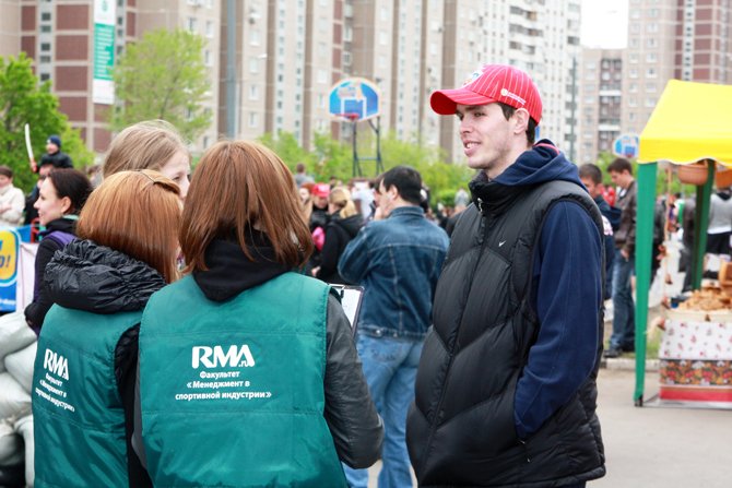 «Забей на проблемы сверху!» также посетили профессиональные баскетболисты: игрок «Триумфа» Роман Левтер, который провел среди зрителей конкурс по «слэмданку», и атакующий защитник ЦСКА и сборной России (а также выпускник RMA) Сергей Быков, давший интервью Александре Топорковой, Анне Цыплаковой и Александре Иощенко – студенткам факультета «Менеджмент в игровых видах спорта», проходившим стажировку на турнире.