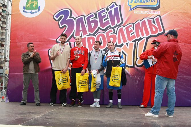 15 мая на юго-востоке Москвы прошел самый массовый турнир по стритбаскету – «Забей на проблемы сверху!», собравший пять тысяч любителей уличного баскетбола. Юноши и девушки могли на 30 площадках побороться за кубки, медали и ценные призы, а для компаний, работающих в области спорта, организаторы провели отдельное VIP-соревнование. Принять участие в нем смогли и студенты программы высшего образования «Менеджмент в игровых видах спорта». Защищать честь факультета вышла команда в составе Владислава Тимкина, Романа Маханько и Вячеслава Грюкова, занявшая третье итоговое место.