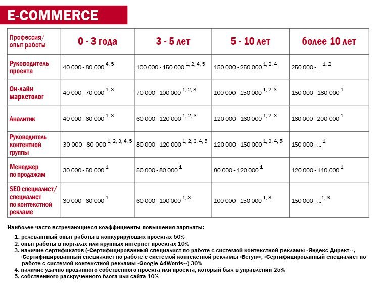 «В этой сфере не менее востребованы маркетологи – те, кто понимает в трафике, имеет сертификаты Google Analytics, «Яндекса» или «Бегуна», знает, где «сидит» целевая аудитория, и умеет ее приводить. Если средняя цена интернет-маркетолога сейчас варьируется от 60 до 150 тысяч, в e-commerce она составляет уже 110-170. В общем, если вы способны обеспечить хорошую конверсию при относительно небольшой стоимости, будете жить хорошо. При этом необходимо знать специфику продаж в вашем сегменте, чтобы выставить на витрину именно тот товар и в том объеме, которые принесут максимальное число покупок».