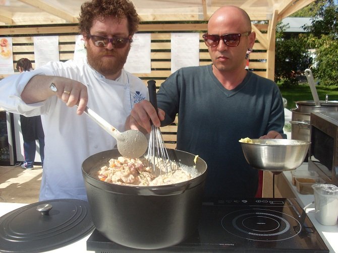 Паоло Бокколини – шеф «Донны Маргариты», проповедник простой, но не банальной итальянской еды, показывал, как делать ледяной томатный суп.