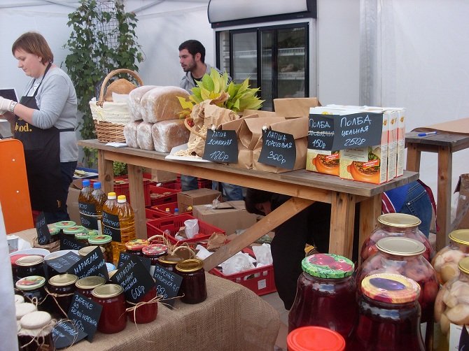 А днем 25 сентября гурманы могли посетить фермерскую ярмарку «Праздник урожая», организованную партнерами RMA – проектом «Лавка.Деревенская еда», которая разместилась во дворе Института медиа, архитектуры и дизайна «Стрелка». Посетители рынка могли найти здесь порядка 400 видов натуральной продукции – от мясных деликатесов до овощей и сладостей. Часто за прилавками стояли сами фермеры, некоторые из которых присоединились к проекту совсем недавно, по итогам летних экспедиций «Лавки».