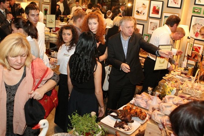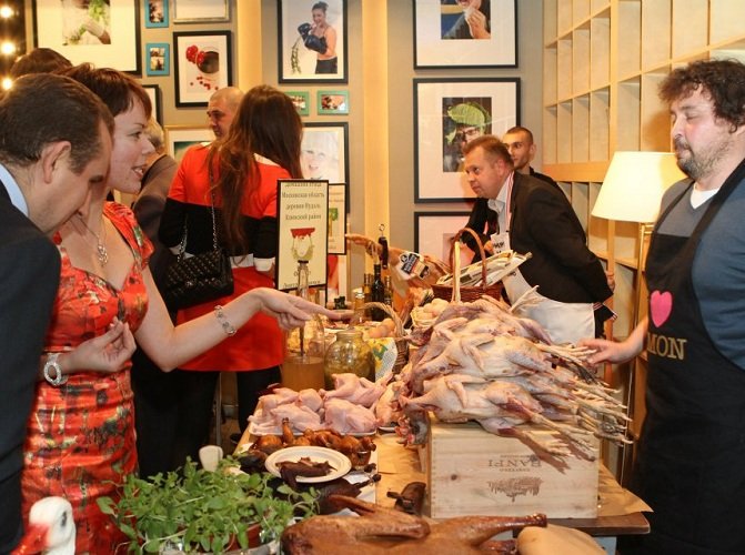 Гости могли попробовать не только фермерскую продукцию – от овощей до сыров, копченостей и солений, но и, само собой, блюда от шефа заведения. Им стал Сергей Батуков, воспитанник парижской и лионской школ, кормивший и первых лиц нашего государства, и ветеранов Великой Отечественной. В меню он включил много мясных и рыбных блюд, обширную гриль-секцию, а также огромный выбор ягодных чаев.