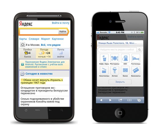 Яндекс создает сервисы и приложения для всех популярных мобильных платформ. С октября этого года Яндекс стал поиском по умолчанию в смартфонах Samsung на платформе bada, продающихся в России и странах СНГ.